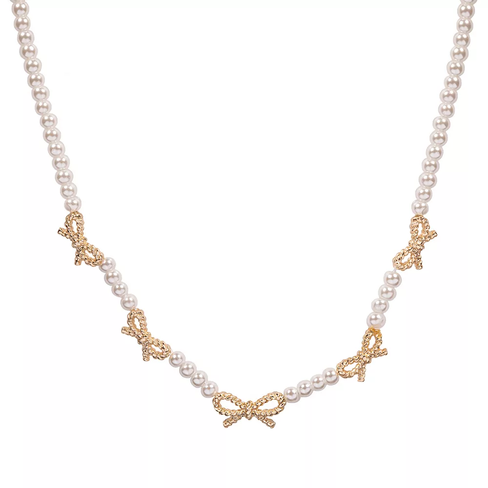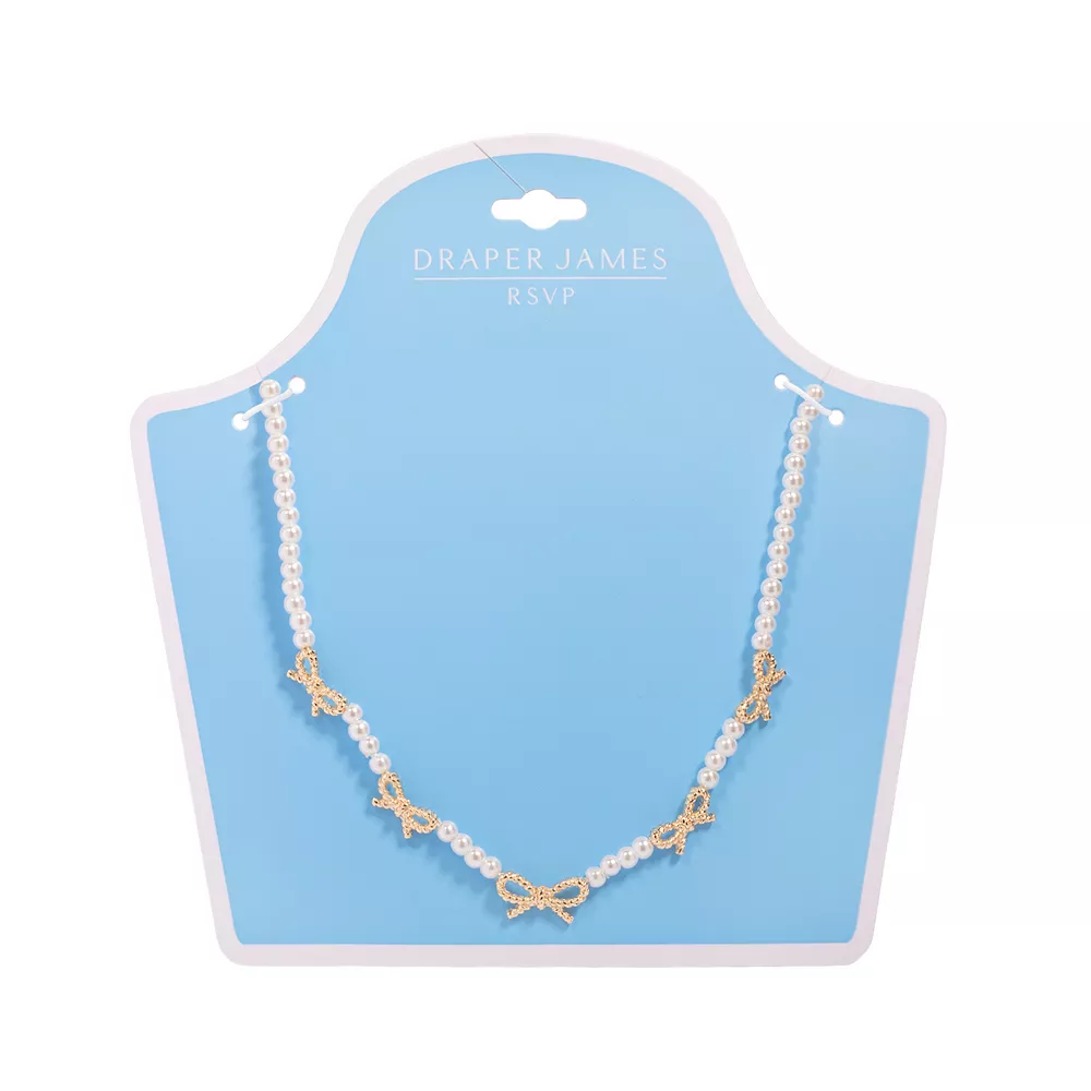 Sweet little gold tone bows interrupt a string of simulated pearls in this darling DRAPER JAMES RSVP station necklace, the perfect way to add a delicate touch to any ensemble.