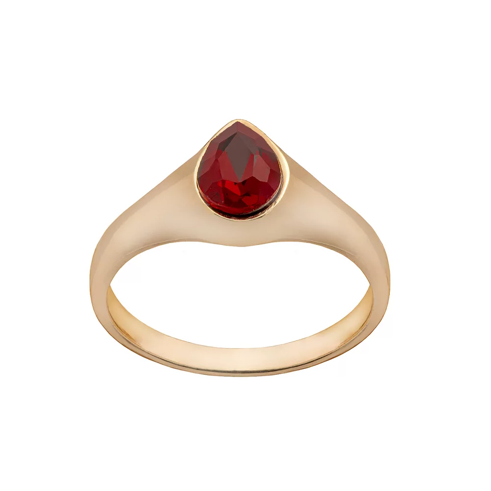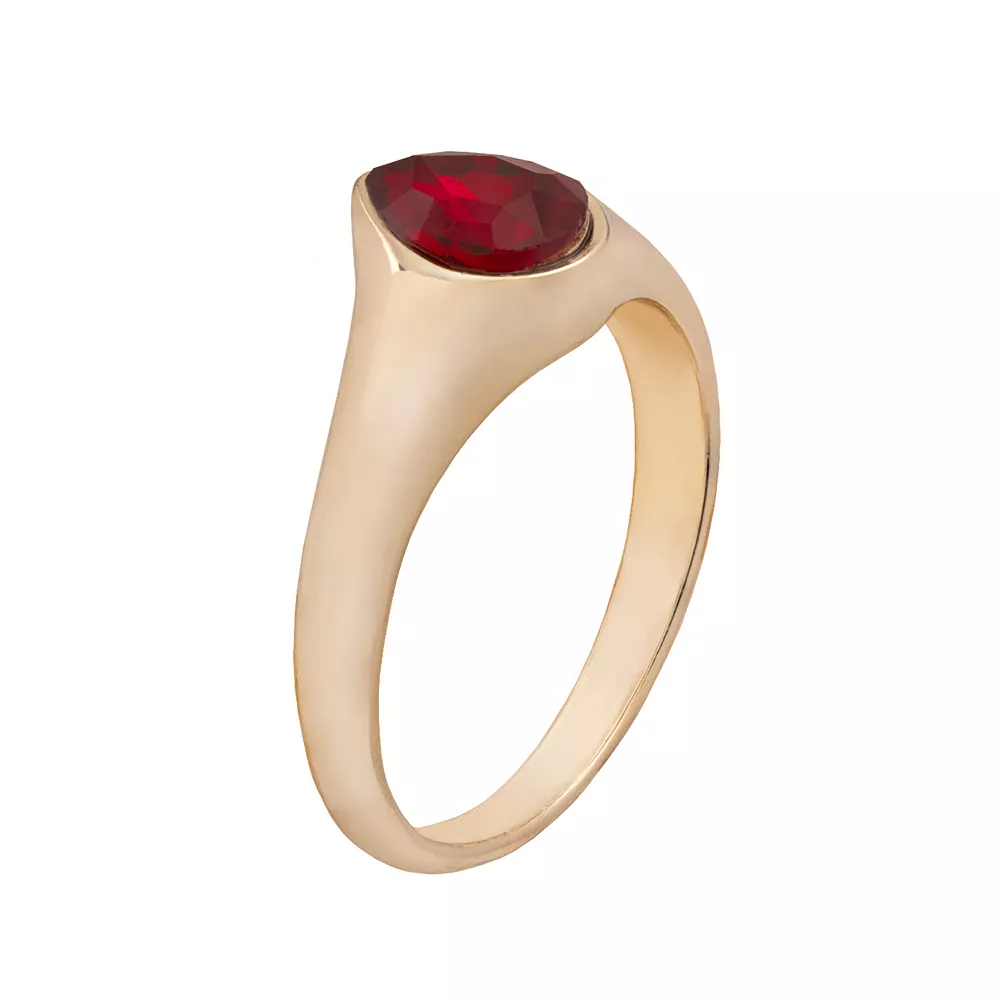 - Red glass center stone