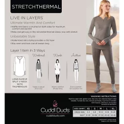 Featuring a brushed construction on both sides for maximum comfort and warmth, this lightweight women’s Cuddl Duds thermal baselayer top is perfect for layering with other pieces.