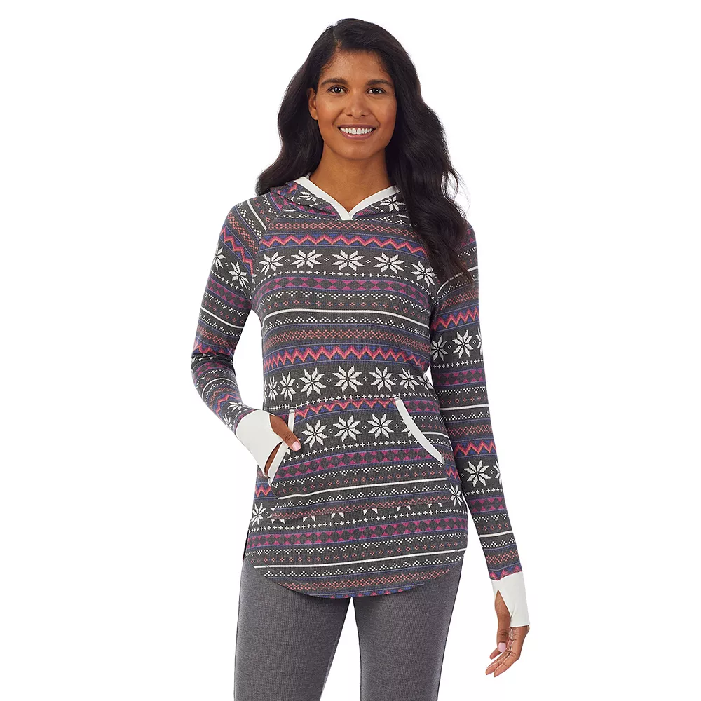 Featuring a brushed construction on both sides for maximum comfort and warmth, this lightweight women’s Cuddl Duds thermal baselayer hooded tunic top is perfect for layering with other pieces.
