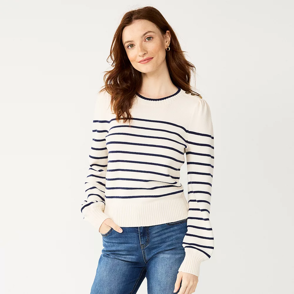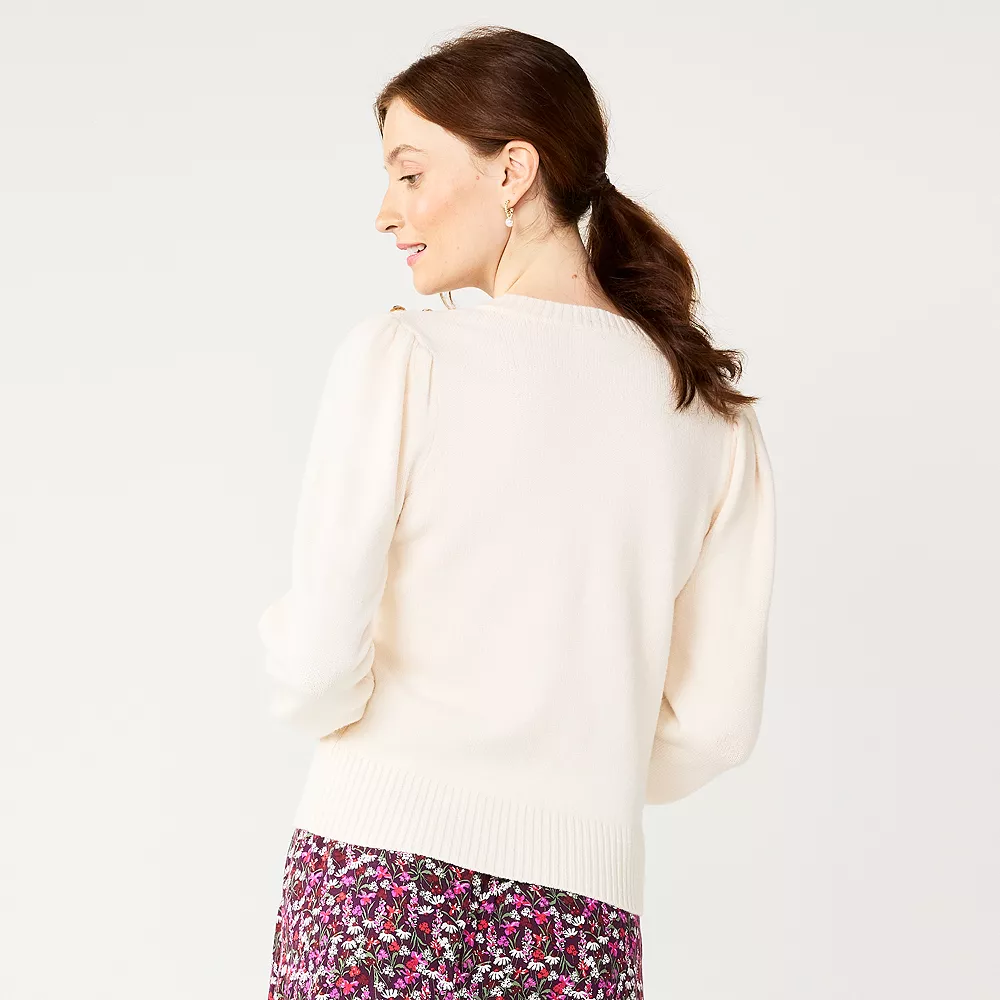 You’ll love the cozy style of this women’s button shoulder sweater by DRAPER JAMES RSVP.