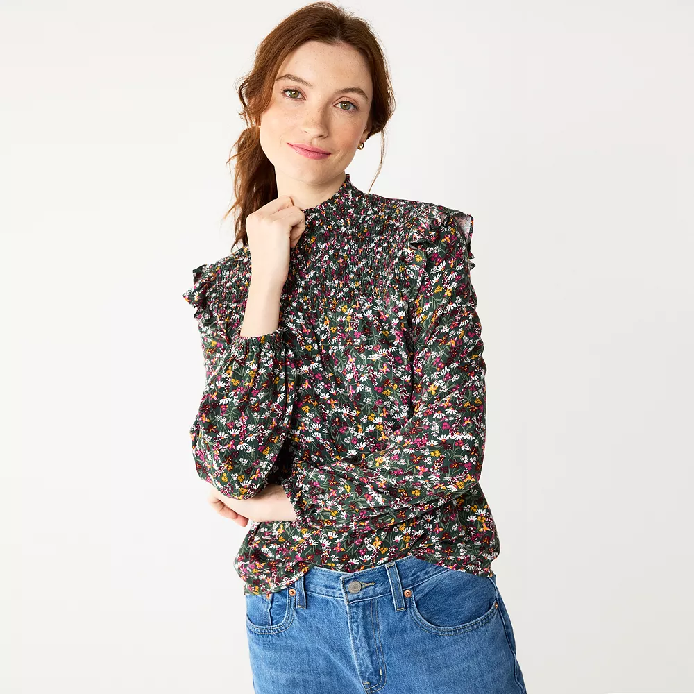 Upgrade your wardrobe with this women’s mini floral blouse by DRAPER JAMES RSVP.